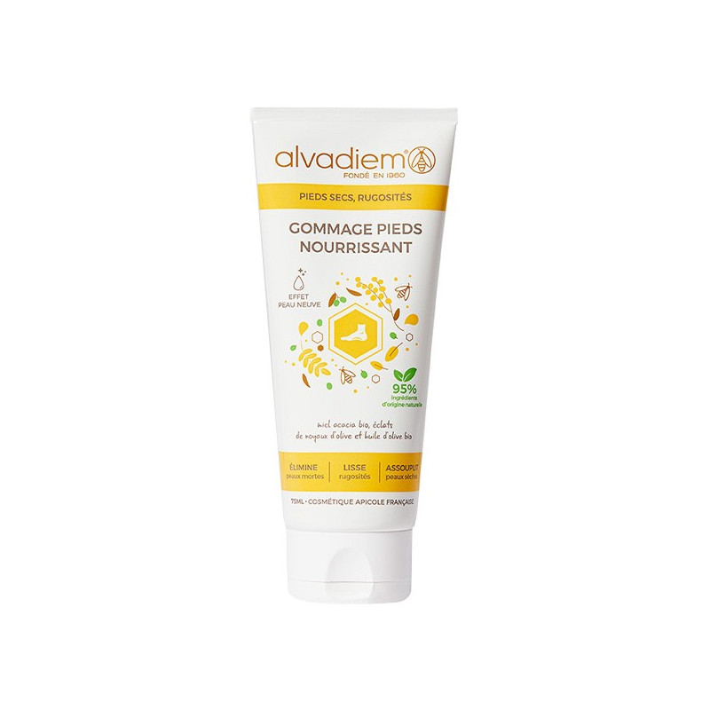 Alvadiem Soin des Pieds Gommage Nourrissant 75ml exfolie les peaux mortes & rugosités et nourrit en profondeur pour un effet peau neuve.