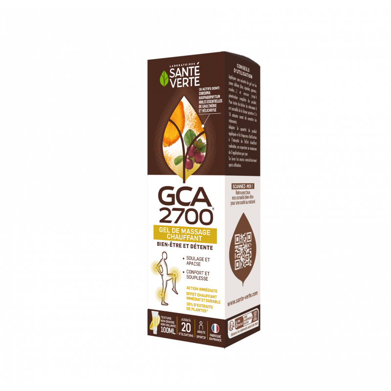Le gca2700® Gel de massage chauffant réunit 16 actifs ciblés, parmi lesquels un extrait d’harpagophytum, de l’eau florale d’hélichryse et de l’huile essentielle de Gaulthérie au parfum apaisant et relaxant.