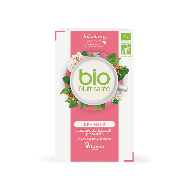 L'infusion Nutrisanté Bio draineur favorise l'élimination des toxines et de l'eau stockée majoritairement au niveau des cuisses et des fesses.