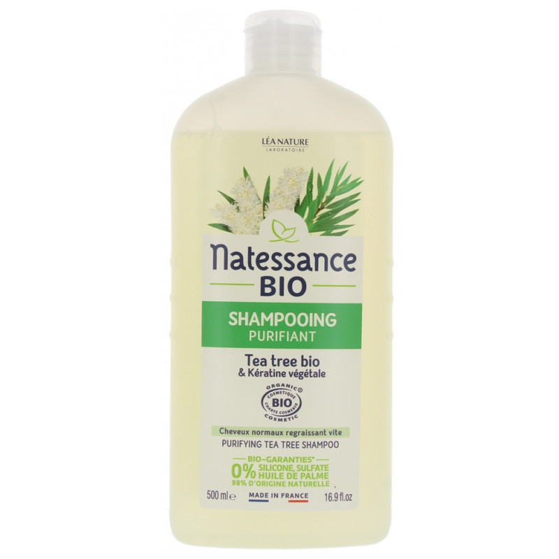 Natessance Shampooing Purifiant Tea Tree Bio et Kératine Végétale 500 ml est un shampoing purifiant pour les cheveux regraissant vite. La kératine végétale brevetée contribue à les protéger et à les régénérer pour une chevelure légère et un cuir chevelu assaini.