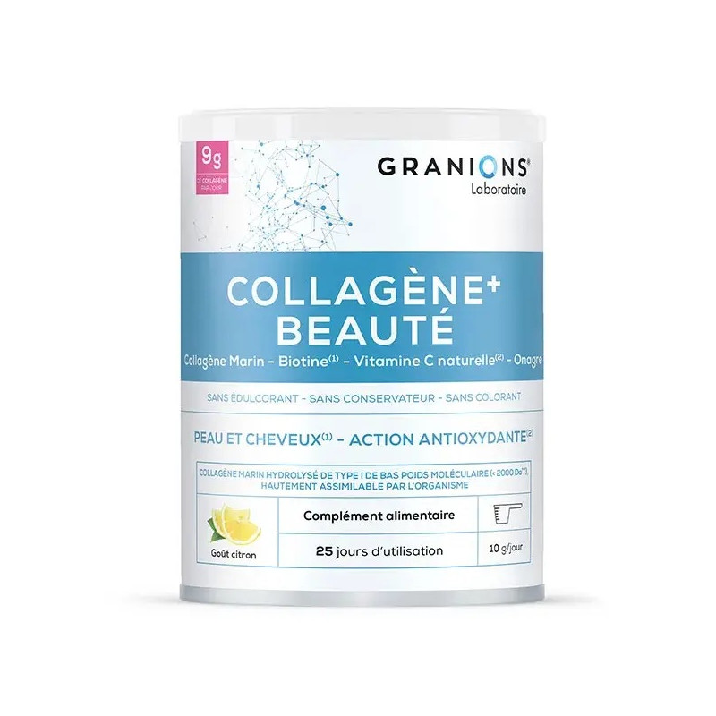 Granions Beauté Collagène Marin, Acide Hyaluronique Vitamine C Goût Citron 250g