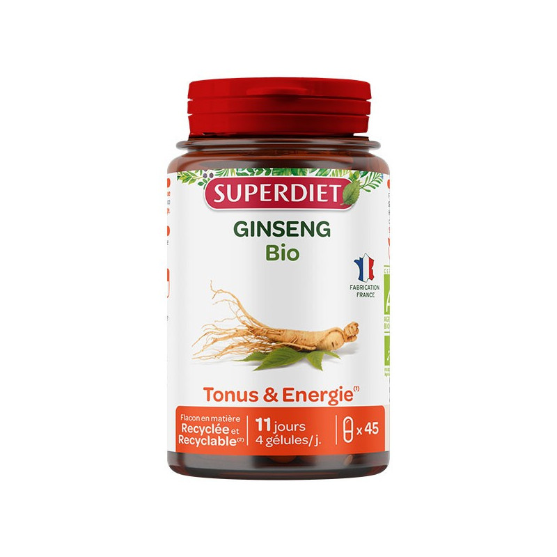 Le Ginseng, prénommé « Racine de longue vie » en Corée, est reconnu pour contribuer au tonus et à l'énergie physique et mentale, grâce à ses propriétés adaptogènes.