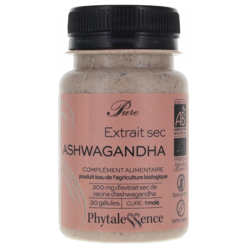 Phytalessence Pure Extrait sec d'Ashwagandha BIO est un complément alimentaire formulé à base d'ashwagandha BIO. L'ashwagandha est une plante riche en flavonoïdes et acides gras qui aident à réduire les effets du stress oxydatif et à améliorer les performances physiques et intellectuelles. L'ashwagandha aide également à réduire le stress et l'anxiété et à lutter contre les troubles du sommeil et la fatigue.