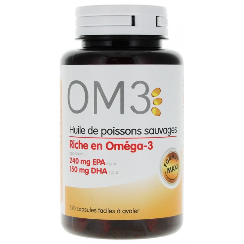 Pour l'élaboration de ce produit, OM3 a sélectionné une huile concentrée de poissons sauvages (anchois et sardines) judicieusement dosée en oméga-3 de type EPA et DHA.
