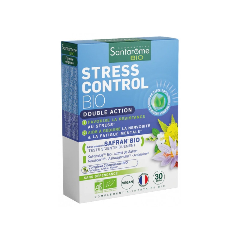 Santarome Stress Control Bio 30 Gélules est un complément alimentaire aux 4 actifs de plantes et 3 bourgeons spécialement sélectionnés :