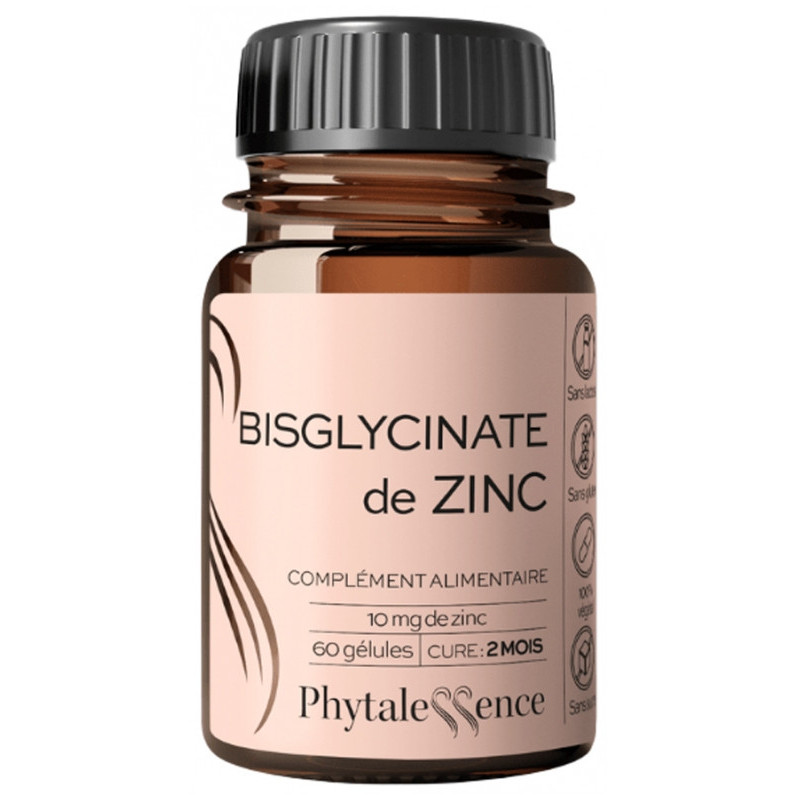 Phytalessence Bisglycinate de Zinc 60 Gélules est un complément alimentaire qui permet d'apporter 10 mg de zinc par gélule, soit 100% des besoins journaliers recommandés..