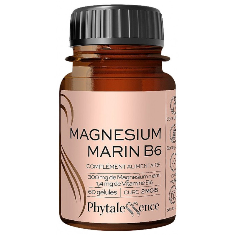 Phytalessence Magnésium Marin B6 60 Gélules est un complément alimentaire à base de magnésium marin et de vitamine B6.