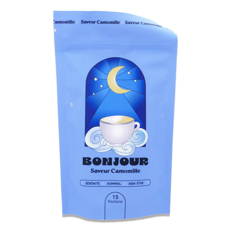Ce complément alimentaire de la marque BONJOUR est formulé sans caféine et 100 % naturel. La camomille et la passiflore sont reconnues pour leur capacité à contribuer à la relaxation et au maintien d'un sommeil sain. Le reishi, un champignon traditionnellement utilisé, participe au soutien des défenses naturelles de l'organisme. La L-théanine, présente à 200 mg, aide au fonctionnement normal du système nerveux, favorisant un état de détente. Ce produit est sans sucres ajoutés, sans gluten et sans lactose, avec une agréable saveur camomille.