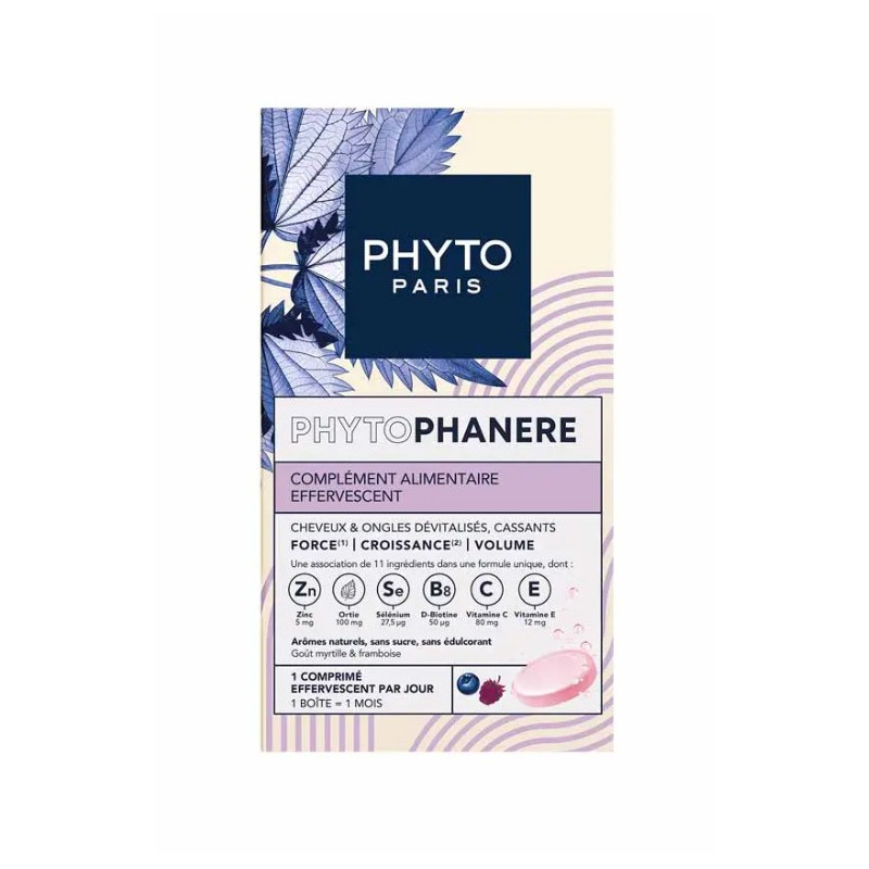 Phyto Phytophanère Cheveux ete Ongles 30 Comprimés Effervescents est conçu pour apporter force, croissance et volume aux cheveux et ongles fragilisés et cassants.