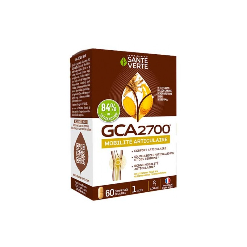 Santé Verte GCA 2700 60 Comprimés est un complément alimentaire qui contient un complexe de 6 ingrédients actifs pour préserver le confort et la souplesse des articulations.