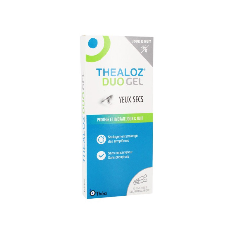 Théa Thealoz Duo Gel 10 unidoses sont des soins qui permettent de protéger et d'hydrater intensément les yeux, de jour comme de nuit, lors de sensations d'inconfort oculaire.