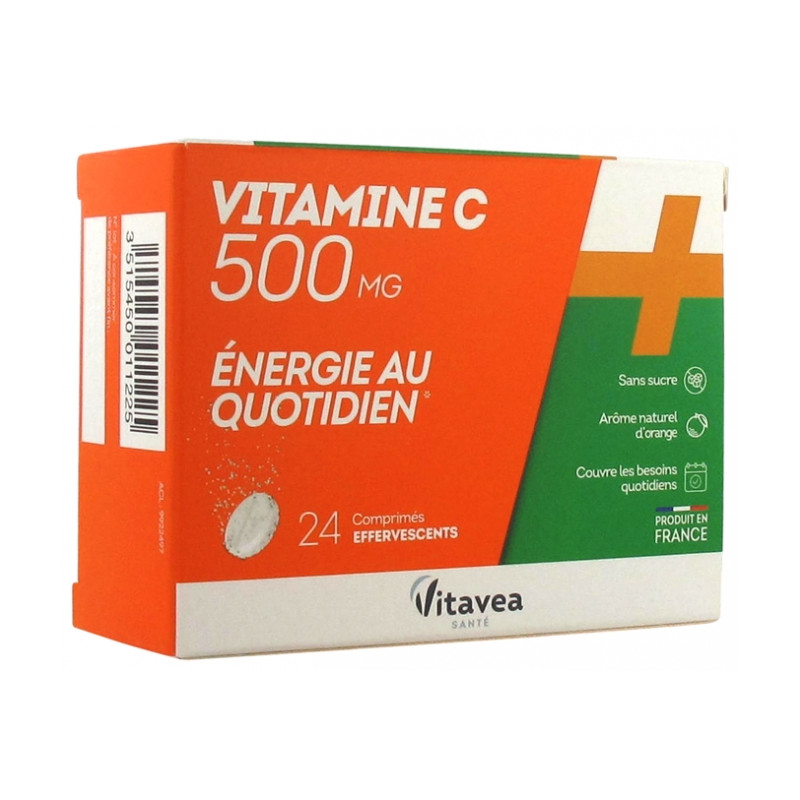 Vitavea Vitamine C 500 mg 24 Comprimés Effervescents est un complément alimentaire à base de vitamine C avec édulcorants, à l'arôme naturel d'orange.