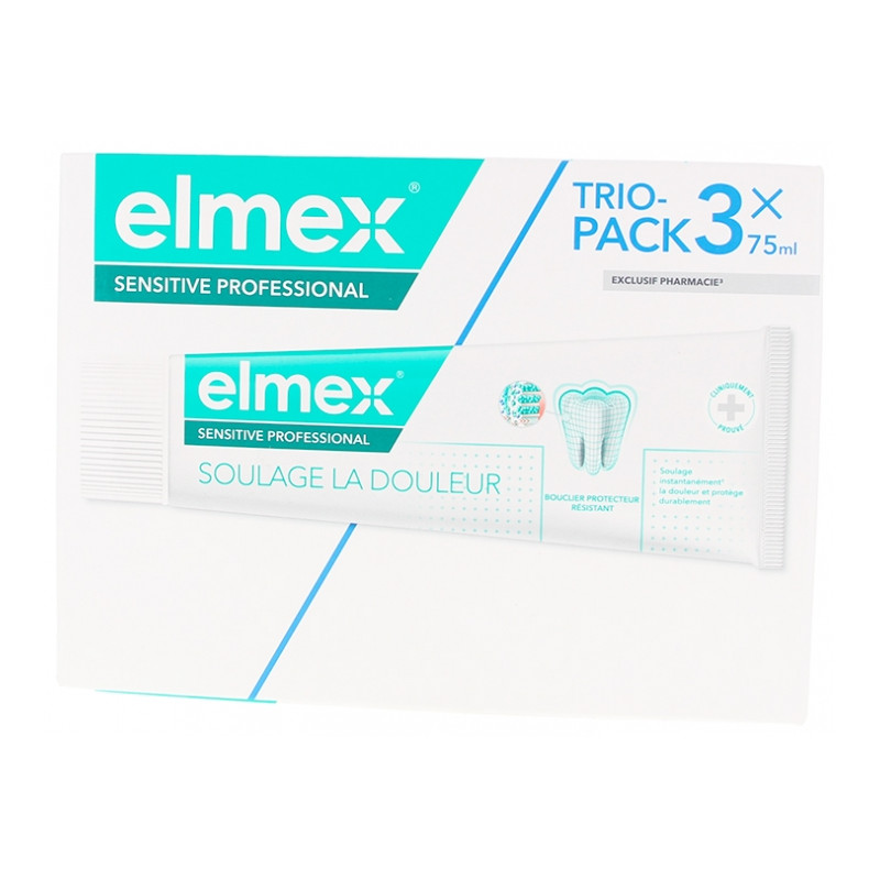 Découvrez le lot de 3 dentifrices Elmex Sensitive Professional de 75 ml chacun, conçu pour offrir un soulagement immédiat et durable de la sensibilité dentaire.