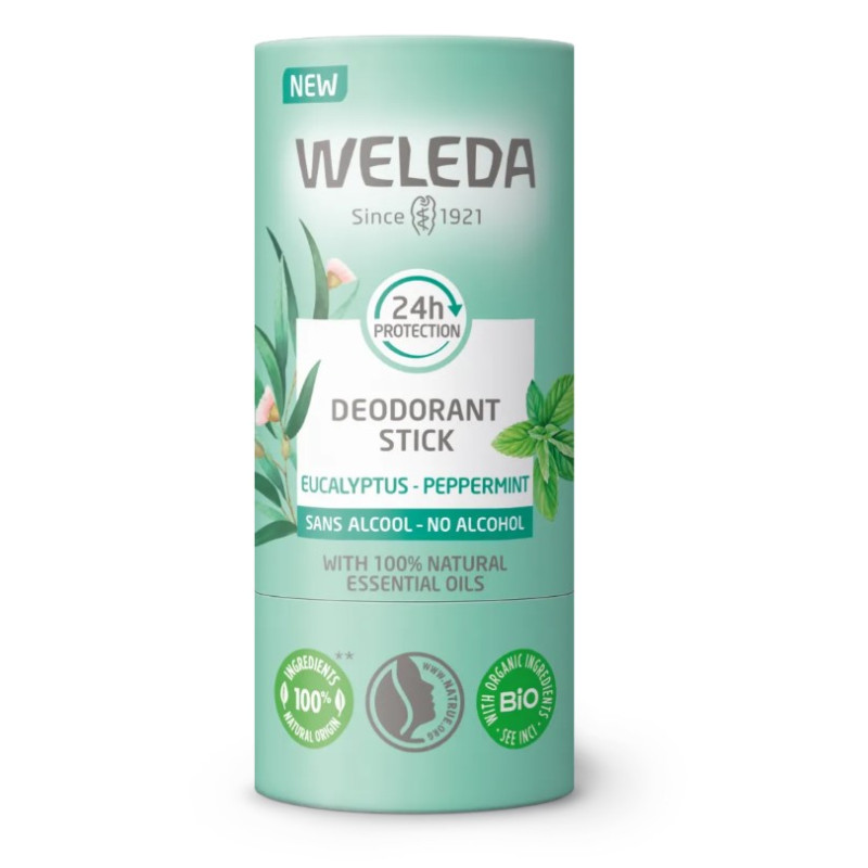 Le Déodorant Eucalyptus Menthe Poivrée en Stick Bio Weleda protège la peau des mauvaises odeurs et offre une agréable sensation de fraîcheur.
