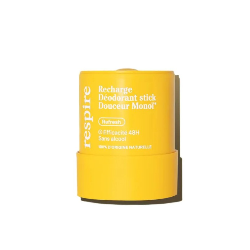 Offrez à vos aisselles 48h de fraîcheur avec le Déodorant Stick Douceur Monoï en format recharge de Respire.