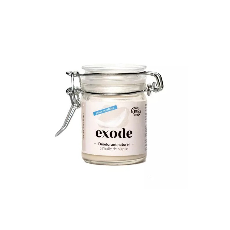 Déodorant baume naturel peau sensible Exode, formulé à base d'huile de nigelle bio et sans huiles essentielles, il vous surprendra par son efficacité et sa fragrance naturelle.