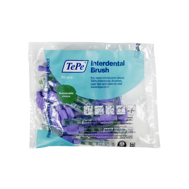 TePe Brossette Interdentaire Eco-Responsable 20 unités Les brossettes interdentaires sont conçues pour nettoyer les espaces entre les dents inatteignables avec une brosse à dents classique.