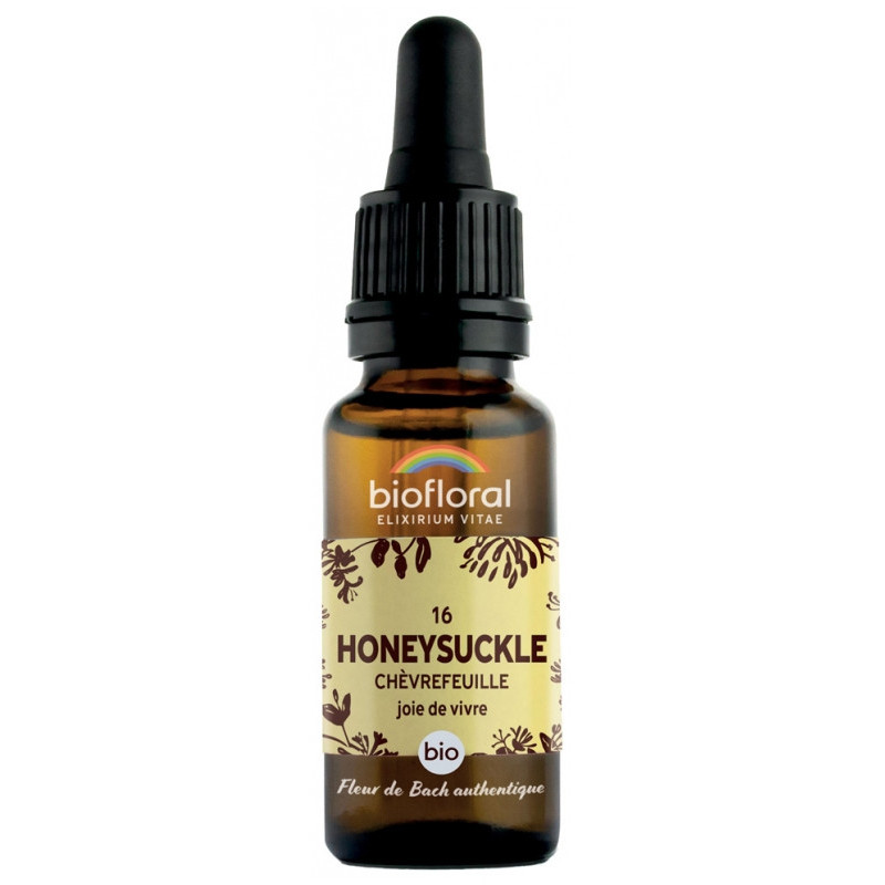 Biofloral Fleurs de Bach 16 Honeysuckle Bio 20 ml est un complément alimentaire indiqué quand on vit dans les souvenirs du passé, trop nostalgique. Il aide à agir au présent.