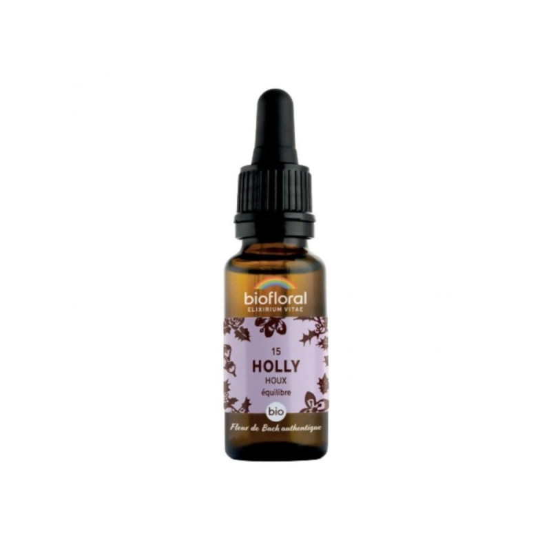 Holly (Houx) est considéré en Fleurs de Bach comme un remède en cas de repli sur soi, de jalousie et de méfiance. La Fleur de Bach n°15 est conseillée aux personnes souhaitant aller vers les autres en exprimant des sentiments positifs.