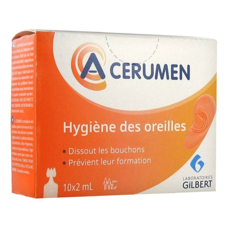 Gilbert A-CERUMEN Hygiène des Oreilles 10 x 2 ml est une solution conseillée pour l'hygiène des oreilles, elle convient aux enfants à partir de 6 mois, comme aux adultes.