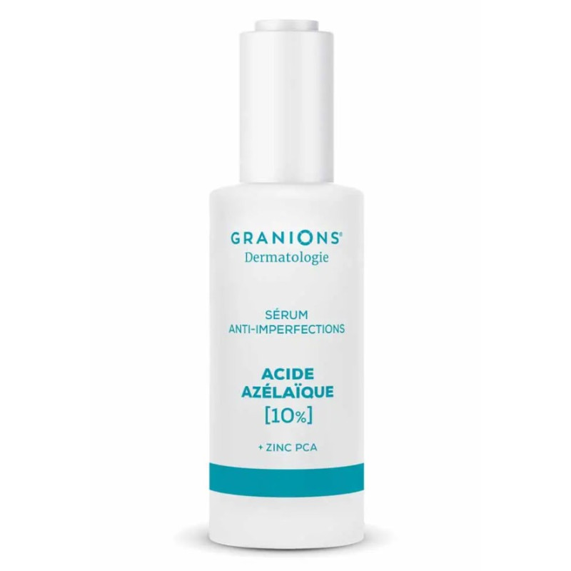 Ce sérum mise sur une association synergique d’acide azélaïque à 10%, reconnu pour ses propriétés régulatrices et éclaircissantes, et de zinc PCA, un actif purifiant aux vertus matifiantes. Ensemble, ces ingrédients clés ciblent les imperfections visibles tout en atténuant les rougeurs et en affinant le grain de peau. La concentration optimale en acide azélaïque permet une action progressive, adaptée même aux peaux sensibles, pour un résultat homogène et un teint plus lumineux. Granions Dermatologie a développé cette formule pour répondre aux besoins des peaux sujettes aux déséquilibres, sans agresser l’épiderme.