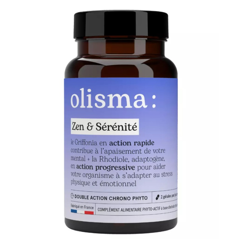 Le Griffonia en action rapide contribue à l’apaisement de votre mental & La Rhodiole en action progressive, plante adaptogène, pour aider votre organisme à s’adapter au stress physique et émotionnel.