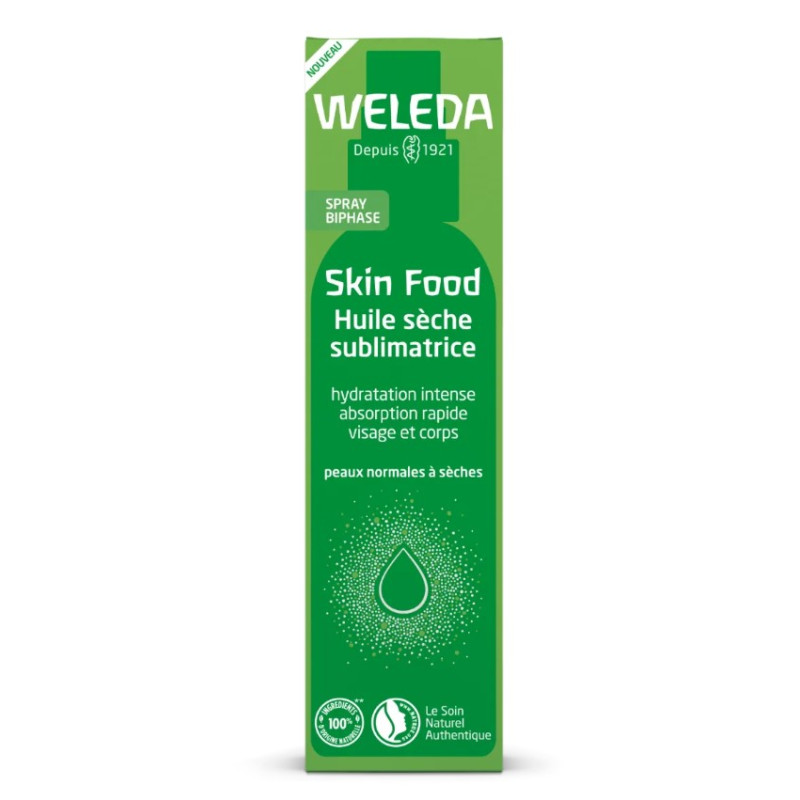 L'Huile Sèche Sublimatrice Skin Food Weleda est une huile sèche biphasée hydratante et nourrissante.