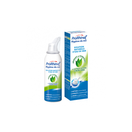 Prorhinel hygiène du nez aloe vera est un spray nasal qui apaise et hydrate les fosses nasales. Multi-fonctions, il permet de nettoyer en douceur, d’apaiser les irritations et d’hydrater la muqueuse sèche. Un soin nasal complet qui aide les nez bouchés et fait disparaitre les sensations d’inconfort. Sa composition à base d’aloe vera est idéale pour apaiser immédiatement les voies nasales et la muqueuse sèche. Prorhinel hygiène du nez aloe vera est formulé sans conservateur, il contient une solution isotonique d’eau de mer purifiée. Haute tolérance, il peut être utilisé chez l’enfant dès 2 ans. Découvrez prorhinel hygiène du nez aloe vera pas cher sur Pharm2M