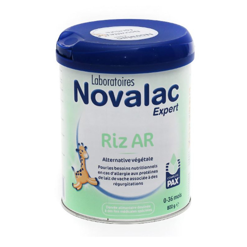 Lait en poudre Novalac riz alternative végétale 0-36 mois est un aliment diététique à base de protéines de riz hydrolysées, spécialement conçu pour répondre aux besoins nutritionnels du nourrisson et de l'enfant en bas âge en cas d'allergie aux protéines de lait de vache et/ou d'intolérance au lactose. Et sujet à des régurgitations