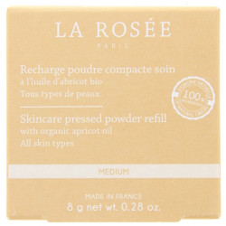 La Recharge Poudre Compacte Soin de la marque La Rosée, à l'huile d'abricot bio, révèle une peau unifiée, matifiée et lissée, pour un teint éclatant et sublimé du matin au soir. À insérer dans le boîtier vide La Rosée, cette poudre rechargeable s'applique facilement avec le pinceau teint.