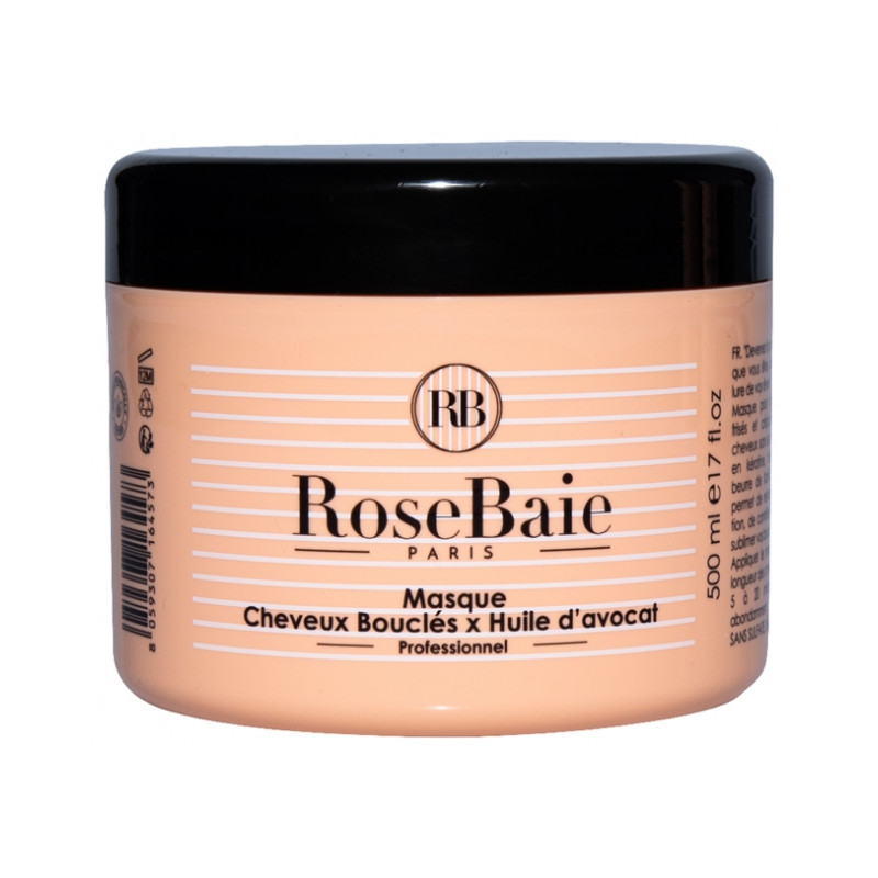 RoseBaie Masque Cheveux Bouclés x Huile d'Avocat 500 ml est un masque pour cheveux bouclés, frisés et crépus. Il démêle les cheveux sans les alourdir. Enrichi en kératine, huile d'avocat et beurre de karité, il les nourrit et permet de restaurer leur hydratation de contrôler les frisottis et de sublimer les boucles.