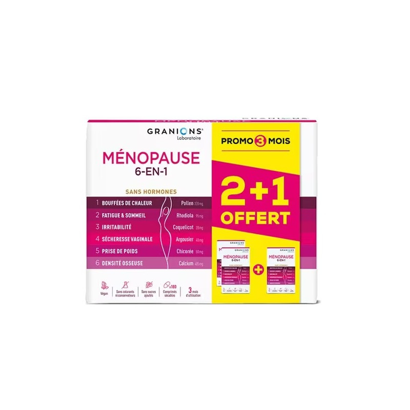 Granions - Ménopause 6-en-1 - Ménopause et Pré-Ménopause - 180 comprimés 3 mois