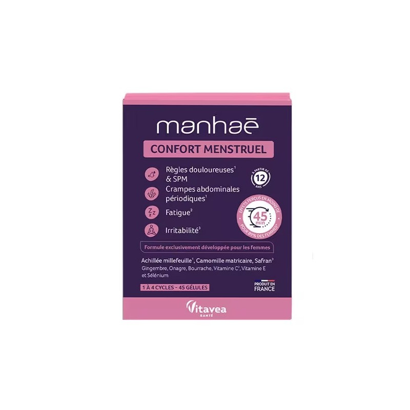 Manhaé Confort Menstruel Règles douloureuses 1 à 4 cycles 45 gélules