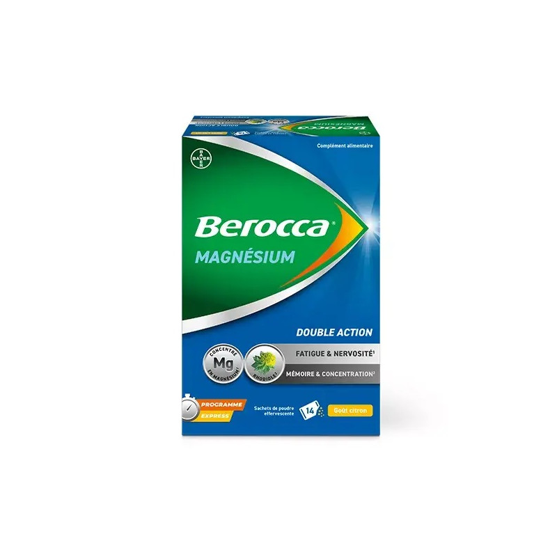 La formule de Berocca® Magnésium contient une dose optimale de magnésium (250 mg, 100% de la LSS***) ce qui limite les risques d'effets indésirables liés au magnésium. De plus, le mélange de citrate de magnésium avec du carbonate de magnésium permet une meilleure biodisponibilité.2