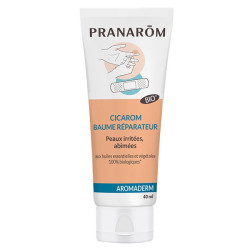Pranarom Cicarom Baume Réparateur Bio 40ml apaise, protège et favorise la réparation épidermique de la peau abîmée : irritations, écorchures, rougeurs, post-interventions, cicatrices, crevasses.