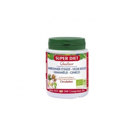 Les laboratoires super diet ont sélectionné pour vous ces quatre plantes bio : le marronier d'inde et la vigne rouge qui contribuent au bien-être circulatoire et participent à la sensation de jambes légères. L'hamamélis et le ginkgo complètent cette formule.