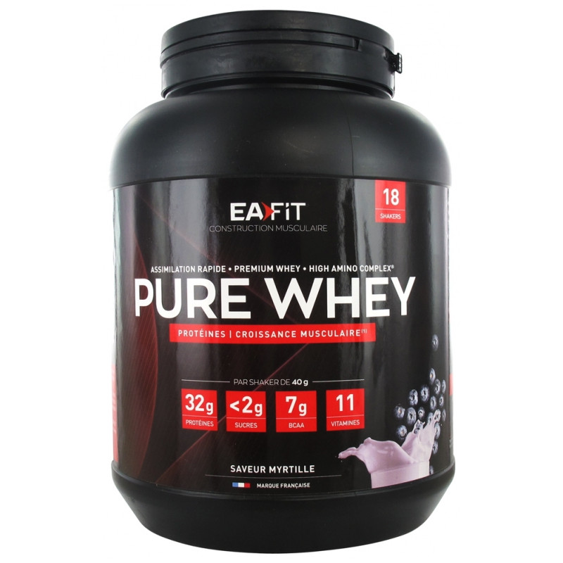 De plus EAFIT® a développé une combinaison exclusive d'acides aminés HIGH AMINO COMPLEX® associant : Arginine - Taurine - Glutamine. PURE WHEY D'EAFIT® est également dosée en BCAA (acides aminés branchés).