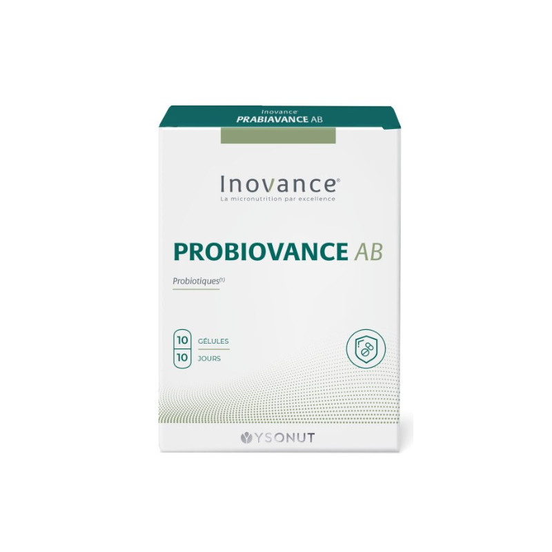 Probiovance AB des Laboratoires Inovance, complément alimentaire à base de 3 souches de lactobacillus qui contribuent au maintien de la flore intestinale.