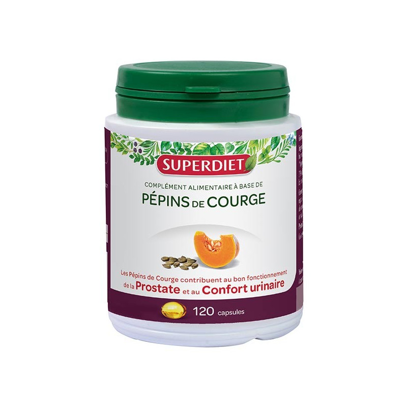 Super Diet Huile de Pepin de Courge est un complément alimentaire à base de plante. L'huile de Pépin de Courge est reconnue pour participer au bon fonctionnement de la prostate et au confort urinaire.