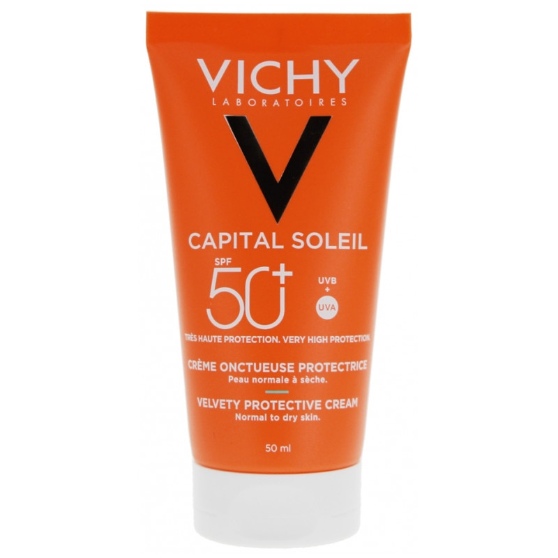 Vichy Capital Soleil Crème Onctueuse Protectrice SPF50+ 50 ml est une crème onctueuse résistante à l'eau de très haute protection pour peau normale à sèche.