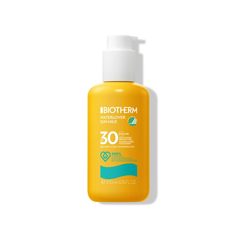 Biotherm Waterlover Sun Milk SPF30 200 ml est un lait solaire fondant pour le visage et le corps qui assure une très haute protection de la peau. Cette protection peut s'utiliser par toute la famille (à partir de 3 ans).
