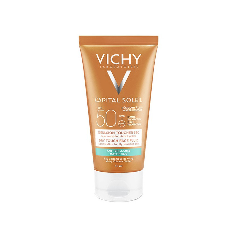 Vichy Idéal Soleil Emulsion Anti-Brillance SPF50 50ml protège efficacement du soleil grâce à son système de filtres à spectre large UVA-UVB.