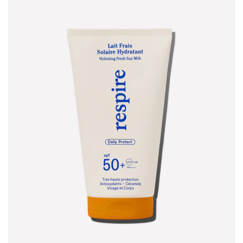 Le Lait Frais Solaire Hydratant, à la texture fluide et légère, et très haute protection SPF50+ grâce à son complexe d’antioxydants et de Céramide, offre une multi-protection contre le vieillissement cutané et le déséquilibre de la barrière de la peau.