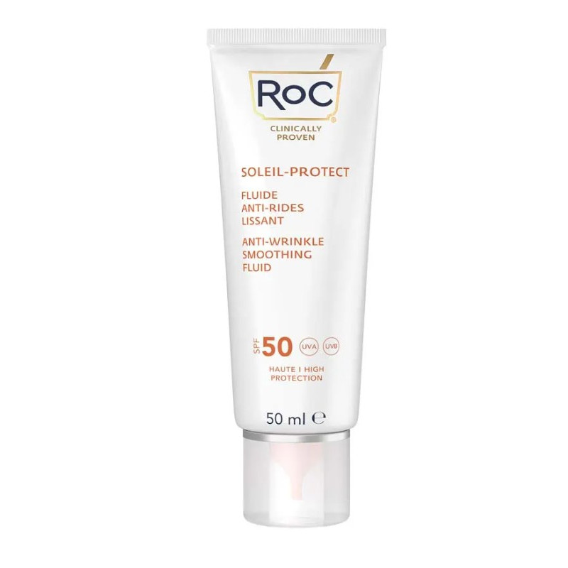 RoC Soleil-Protect Fluide Anti-Rides Lissant SPF50 50 ml est un fluide qui réduit visiblement les rides, protège le capital jeunesse de la peau et améliore son apparence. Il est aussi léger qu'un soin hydratant quotidien. Sa texture ultra-légère pénètre rapidement et ne laisse aucune trace blanche.
