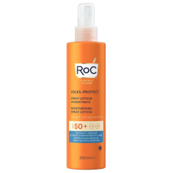 RoC Soleil-Protect Spray Lotion Hydratante SPF50+ 200 ml est une très haute protection solaire formulée pour protéger le capital hydratation de votre peau.