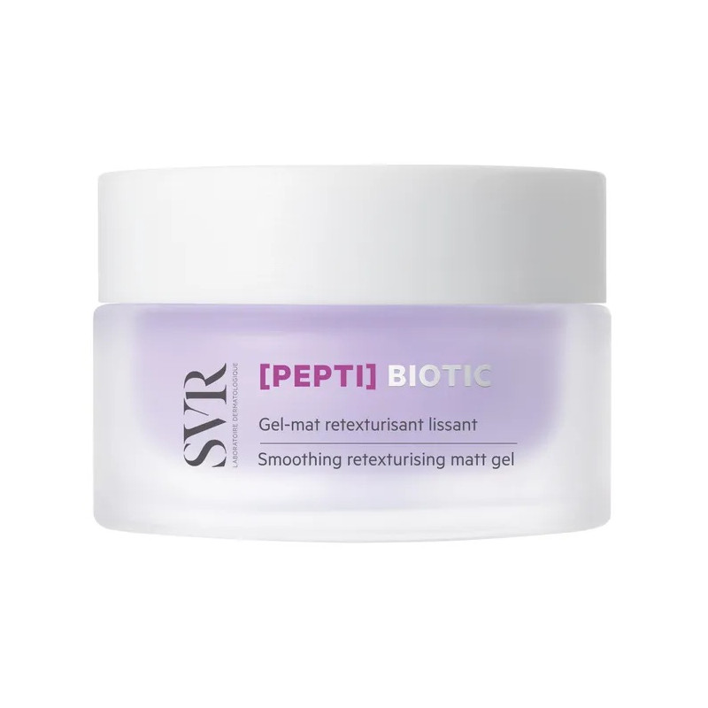 Le Gel-Mat Retexturisant Lissant [PEPTI] BIOTIC de SVR est un soin innovant conçu pour les peaux mixtes sujettes aux brillances et aux irrégularités.