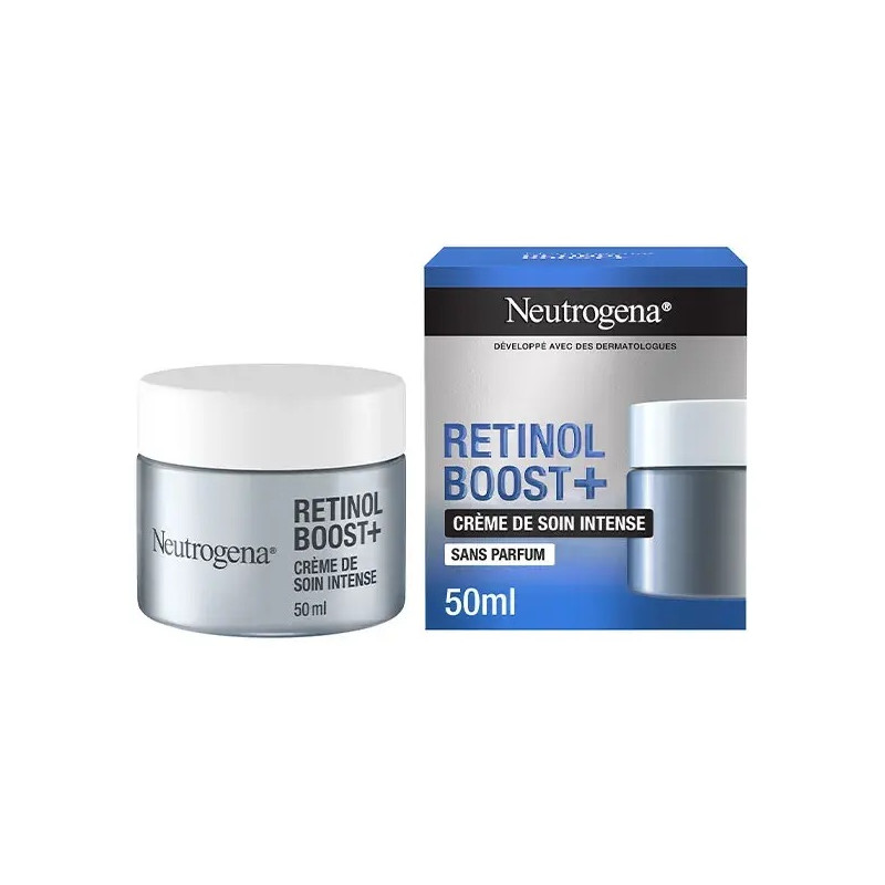 Crème de Soin Intense Retinol Boost+ Développé avec des dermatologues, la Crème de Nuit Intense Neutrogena Retinol Boost+ combat efficacement les signes visibles du vieillissement, y compris les rides profondes.