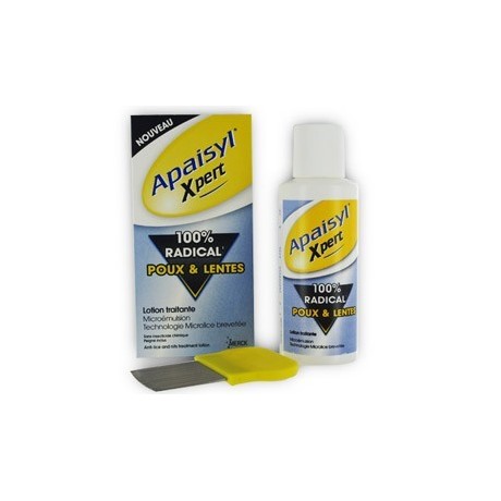 Le produit anti lentes Apaisyl Xpert est un produit anti-poux radical qui tue 100% des poux et 100% des lentes* grâce à la microémulsion, une formule brevetée et sans produits chimiques.