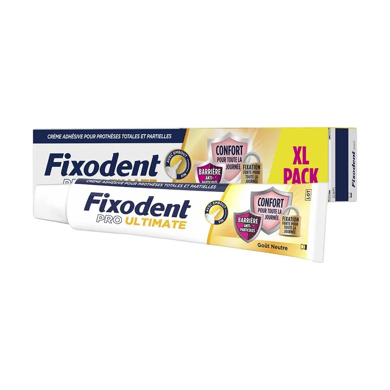 La meilleure technologie Fixodent : elle aide à éviter que les particules alimentaires ne se logent sous les prothèses dentaires et offre une tenue toute la journée pour un confort continu. Goût neutre.