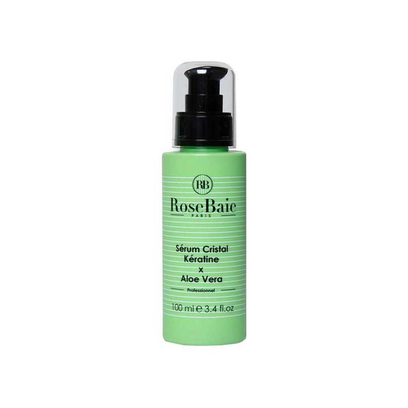 Le sérum cristal Rosebaie à l’aloe vera et kératine sublimera votre chevelure.